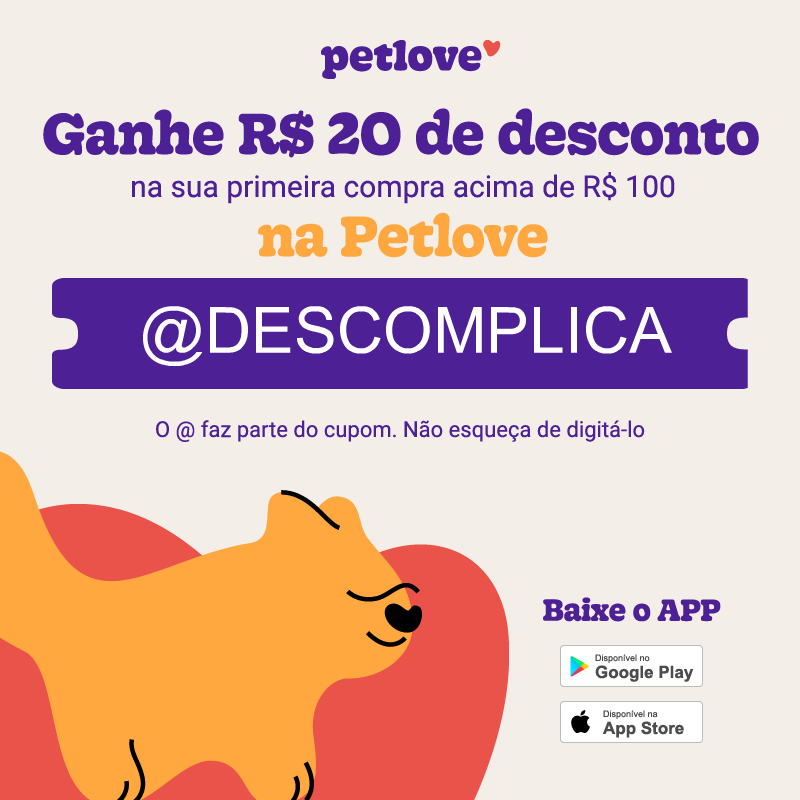 Quer ganhar R$ 20 de desconto na sua primeira compra a partir de R$ 100 na Petlove? Use meu cupom @DESCOMPLICA e aproveite!